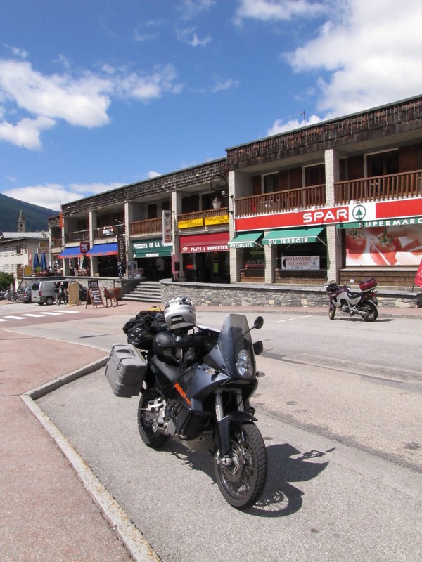 Géraud : Ce matin, nous décidons de faire un petit ravitaillement au centre commercial à OULX « LE BAITE » pour acheter moult gâteries afin de nous restaurer puisque nous n’avons pas encore petit déjeuner. Il faut bien se remplir la panse car au programme du jour, le Mont Cenis !