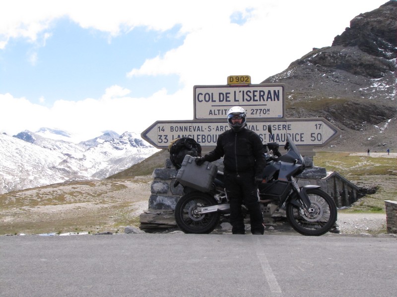 Le chocolat est bien chaud, ça fait un bien fou, nous avions bien froid ! Flo : la route depuis le Mont Cenis jusqu’au col de l’Iseran est superbe. J’ai tout de même un peu moins apprécié la montée vers le col de l’Iseran car j’ai eu très très froid. Il y avait du vent et j’ai bien cru que cette fois ci ce sont tous mes doigts que j’allais perdre