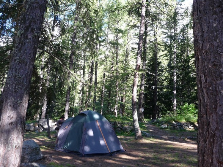 Géraud : Il fait frais, je suis fatigué, nous décidons de trouver un camping dans le coin. Nous atterrissons dans un superbe endroit, d’où nous avons une très belle vue sur le Mont Blanc. Nous posons la tente sous les sapins et trouvons le coin très beau, le camping se situe à Plampincieux, une bonne adresse, le camping GRANDES JORASSES.