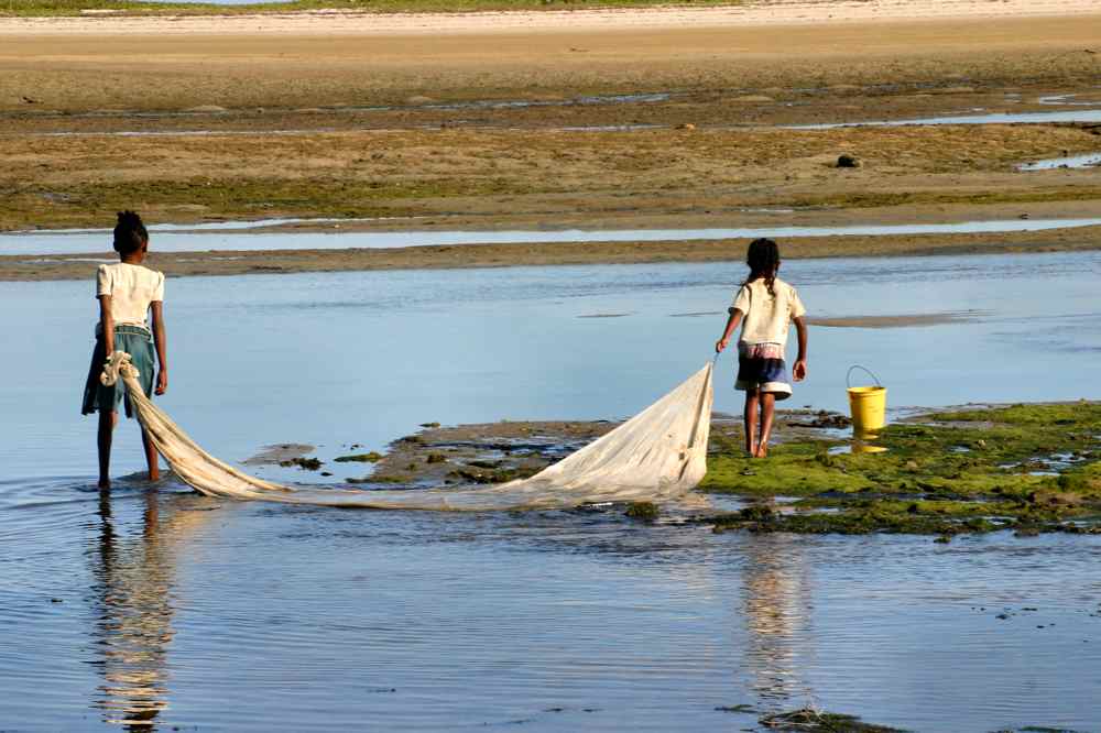 Les gamins passent la matinée à pêcher au filet en groupe tout en s’amusant, en poussant des grands cris de joie.