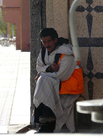 assis sur sa chaise sur le trottoir d'en face pour 20 Dirhams