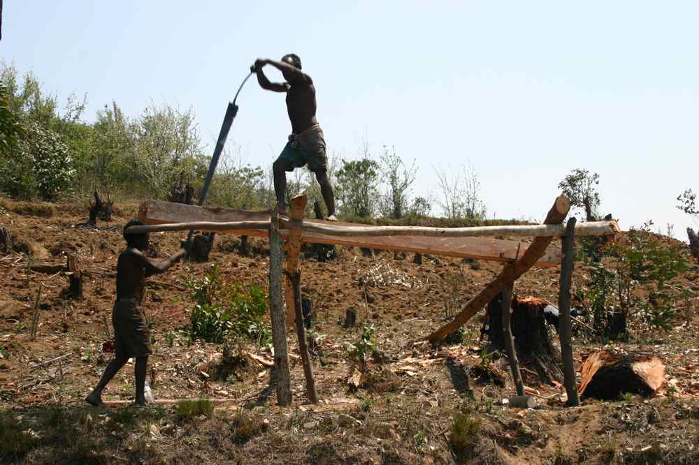 les scieurs de long fabriquent les planches  sur le lieu de coupe avec une précision étonnante