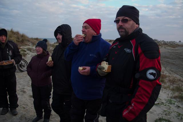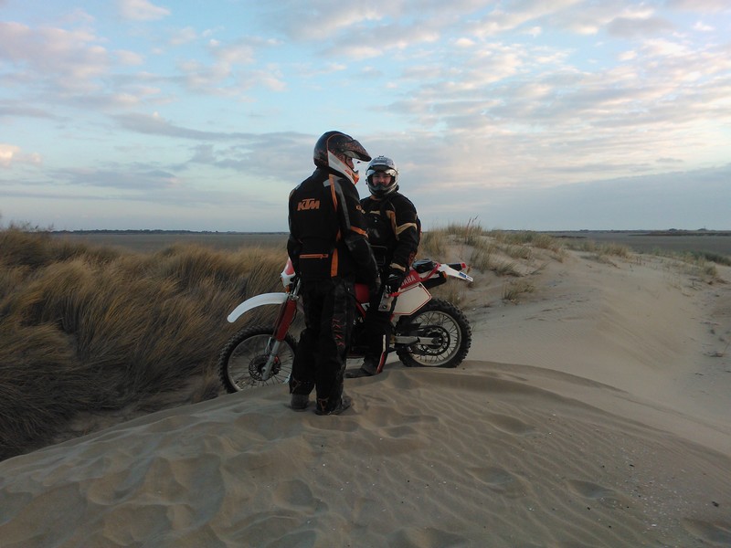 Arrivée aux Salins vers 15h, le temps de prendre la piste défoncée, d'arrivée sur la plage, de décharger, de se changer et de retrouver nos compères, il sera 16h passée.