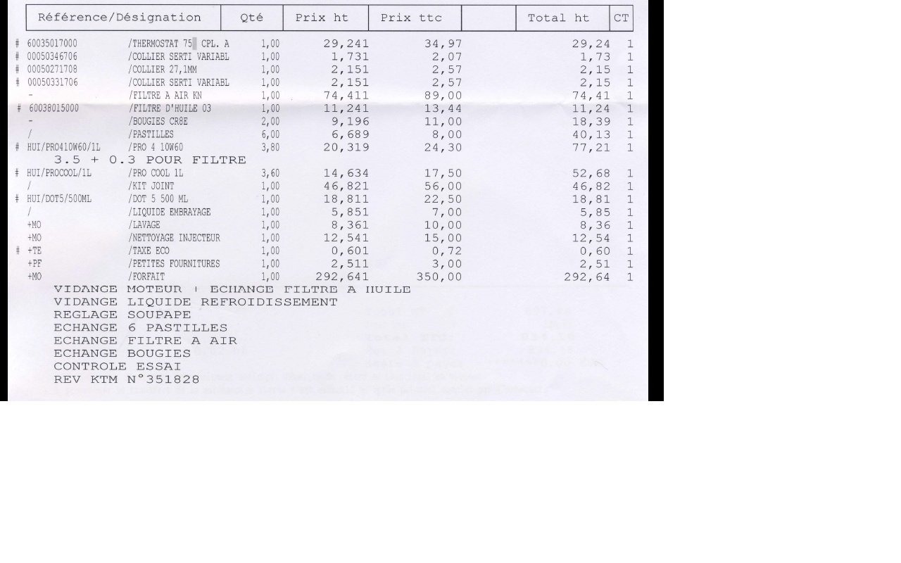 Hellol Fud, la révision des 30000, je l'ai faite faire pas un mécano KTM (garantie oblige).