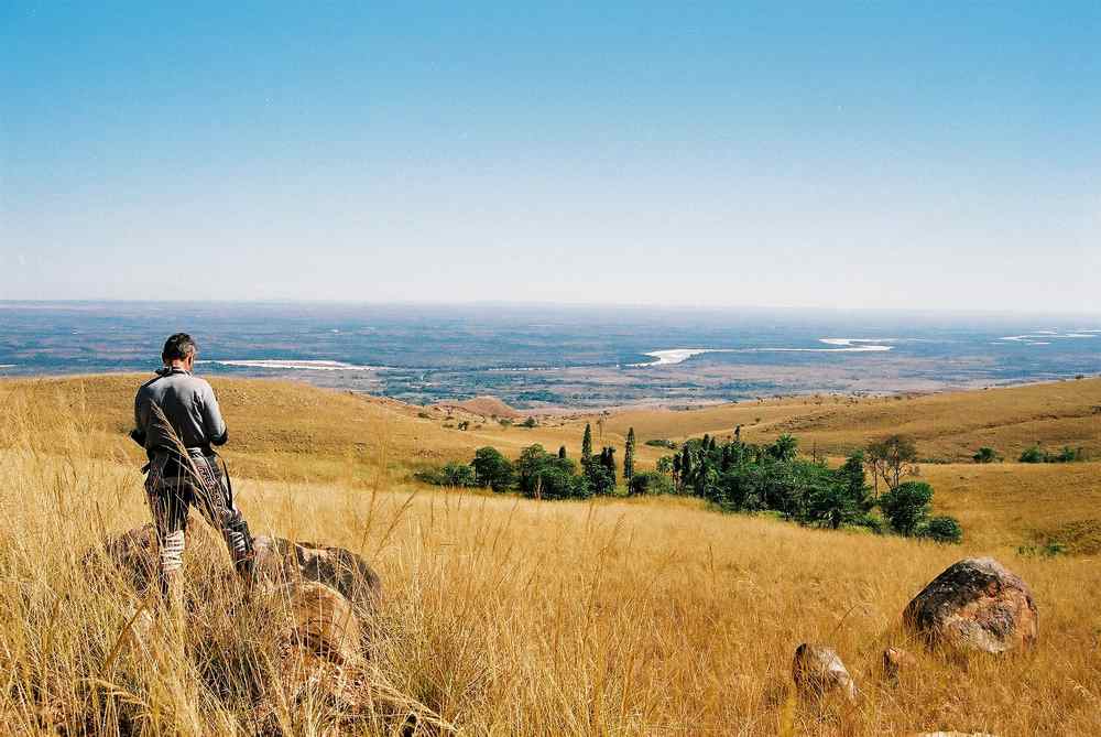 Après Ambatofinandrahana, (rajout d’essence) nous ne verrons plus de véhicule jusqu’à demain soir, la mauvaise piste commence, cassante, glissante, caillouteuse, de grosses ornières, une progression lente, nous mettons environs 2 heures pour atteindre les larges plaques de roches du col d’Intremo, nous pensions voir des traces de moto ou de 4x4 mais ce n’est pas évident, les averses ont nettoyé la piste. Nous descendons vers les plateaux herbeux, cela fait 3 heures que nous roulons sans âme qui vive, il y a pourtant quelques cases isolées et des lopins de terre cultivés.