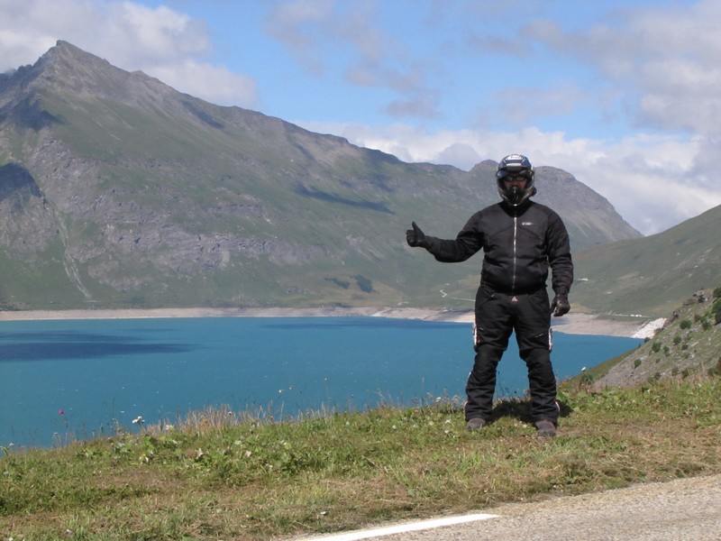Flo : la route depuis le Mont Cenis jusqu’au col de l’Iseran est superbe. J’ai tout de même un peu moins apprécié la montée vers le col de l’Iseran car j’ai eu très très froid. Il y avait du vent et j’ai bien cru que cette fois ci ce sont tous mes doigts que j’allais perdre :evil: . Gants de merde !!!!!!!!
