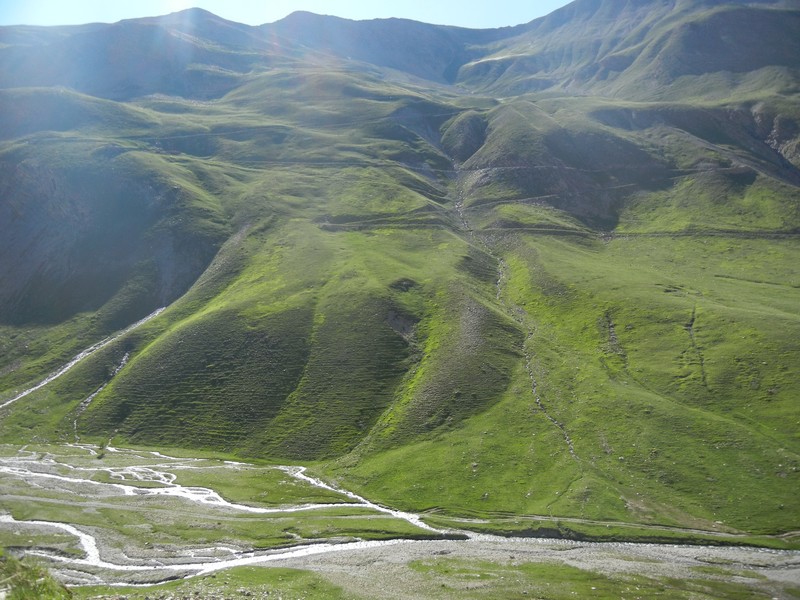 Un névé m'a empéché d'atteindre l'entrée du tunnel au dernier tiers je pense, alors nous sommes redescendus puis avons fait le tour par la route pour monter par l'autre côté (toujours en pneus sport/route) et là nous sommes arrivés à trois cent mètres de l'autre entrée . Un névé encore plus gros nous attendais et faisait des miséres à deux hollandais chacun avec les nouvelles Ténéré 660 à pneus crampons (eux !) .