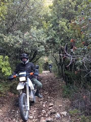 Les copains arrivent les uns après les autres, Eric sur sa 400 XR, Cyrille sur sa belle 350 DR mauve et jaune, Hervé qui ne sera pas le dernier avec sa 125 DTR suivi par Michel venu depuis pays niçois la veille sur son 350 DR.