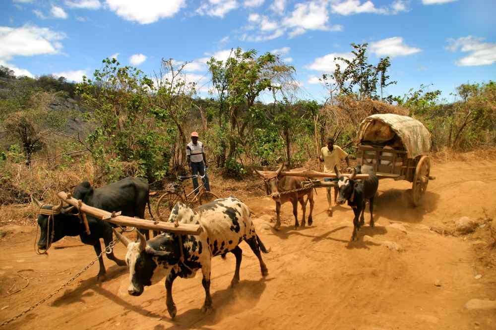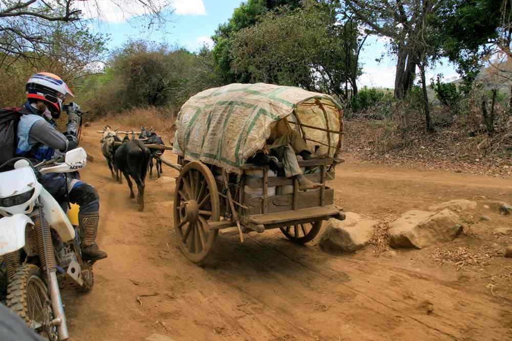 Piste au nord de l’ Ankarana, chariot tiré par 6 zébus assez rare à voir