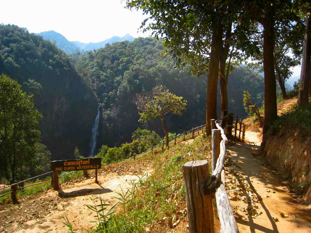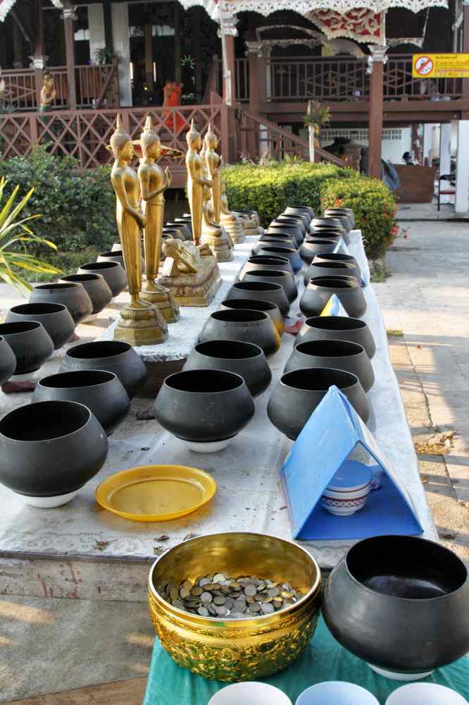 Nous visitons le centre ville encore un peu endormie, visitons leur beau temple près du lac, puis celui sur la colline qui domine la ville. Nous reprenons la route tard, cette journée sera moins sportive seulement une vingtaine de km de pistes, des visites de sites touristiques, les routes sont bordées de forêts de résineux, de bambous, nous baladons dans des vallées en cul de sac, passons à Mae Lana, Tham Lot et après 190km, nous arrêtons à Pai où règne une ambiance bizarre influencée par le tourisme, rien à voir avec les bourgs que nous avons traversés ou fait étape, il y a un large choix d' hôtels, de restau, un marché de nuit....ici les scooters automatiques sont à 2 euros/ jour.